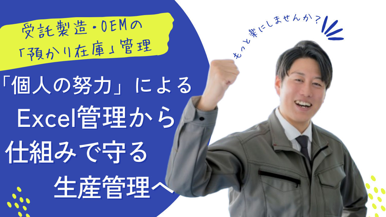 受託製造・OEMの「預かり在庫」管理、もっと楽にしませんか?「個人の努力」によるExcel管理から、仕組みで守る生産管理へ大切な「預かり物」を、現場のプレッシャーにしていませんか? 食品OEMや受託製造の現場において、得意先から預かった原料や包材といった「支給品」は、お客様との信頼そのものです。 自社の在庫以上に、一分の狂いもなく管理したい […]
