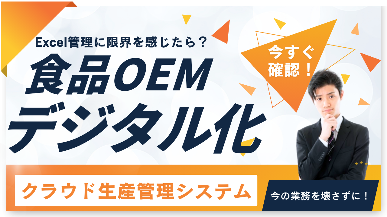 食品OEMのExcel管理に限界を感じたら?クラウド生産管理システムで「今の業務」を壊さずデジタル化する方法現場の努力で支えてきた「Excel管理」が、少しずつ重荷になっていませんか? 多品種小ロットの食品OEM(受託製造)の現場では、日々、得意先ごとの細かな要望に応えるために、非常に複雑な工程管理が行われています。 その中心 […]